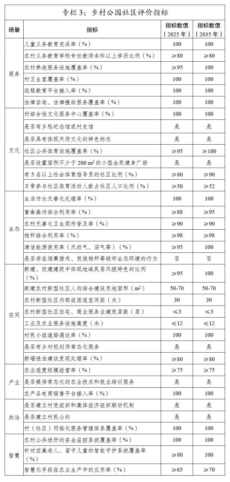 第三章 突出公园城市特质 建设幸福美好公园社区 服务建设践行新发展理念的公园城市示范区工作大局,将幸福美好公园社区建设作为公园城市示范区建设的重要组成部分、品质化现代社区建设的工作抓手,适应产业经济地理重塑变化,统筹生产生活生态功能布局,实施差异化发展、精细化治理策略。将城镇社区、乡村社区、产业社区作为幸福美好公园社区的基础类别,将未来公园社区作为幸福美好公园社区的高阶形态,将主题公园社区作为幸福美好公园社区的多样表达,系统构建开放包容、主题鲜明、可持续发展的幸福美好公园社区体系,全面打造彰显公园城市特质的新型城市功能单元。 第一节 分类建设城镇乡村产业三类公园社区 服务市委“三个做优做强”重大决策,以城乡社区为场域提升城市功能品质,城镇公园社区以品质宜居为导向,强调空间合理规划布局;乡村公园社区以生态宜居为导向,强调资源活化利用;产业公园社区以宜业宜居为导向,强调职住平衡产城一体。到2025年,示范创建1150个幸福美好公园社区。 (一)建设城镇公园社区。突出功能复合、品质宜居,顺应现代社群发展趋势,强化土地开发强度管理对社区功能提升、空间形态塑造和场景特色营造的作用,探索开放式的街区形态和复合式的社区功能,促进土地资源集约高效利用,营造宜人宜居的社区生活空间。立足人的全生命周期需求,提供公平可及的基本公共服务和精准精细的便民生活服务,以新零售、新业态、新模式为突破,推动社区传统商业改造升级,积极发展社区商业新业态新模式,打造个性化、体验化、品质化的社区消费新场景。 (二)建设乡村公园社区。突出城乡融合、生态宜居,推广“小规模、组团式、微田园、生态化”模式,充分利用林盘、水系、山林及农田等资源要素,因地制宜规划布局乡村聚居点,构建“有机和谐、尺度适宜”的空间聚落形态。基于生态资源本底,促进多元业态融合,持续发展壮大农村集体经济,完善集体经济收益分配制度,构建以特色农业为核心、农商文旅体融合发展的产业模式,推动村民共享产业发展成果,走向共同富裕。 (三)建设产业公园社区。突出产城一体、宜业宜居,坚持整体开发、集约高效利用土地,鼓励产业用地多功能立体开发和复合利用,实现产业空间、生活空间和交往空间在楼宇内水平融合、垂直叠加,打造集科研、教育、展示、商业、居住等于一体的复合型城市功能单元。综合考虑科技创新人才年轻化、高知化、国际化等特征,精准配置品质化、特色化服务设施,建设集产业服务、公共服务、商业服务于一体的“邻里人家”,营造一站消费、集成服务的新场景。